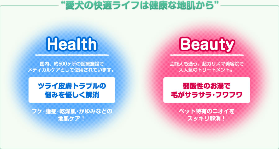大切な家族の一員であるワンちゃんの健康と美容のため、全てのトリミングメニューに炭酸泉を施術致します。